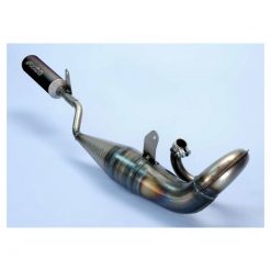 Der Calibrata von Simonini ist definitiv die leistungsstärkste Anlage für Ciao-Motoren. Handgeschweisst und top verarbeitet ist der Auspuff schon optisch absolut gelungen. Ein grosser Carbon-Schalldämpfer sorgt für angenehm tiefen Racing-Sound. Auf den grossen Kits von Malossi und Polini entfaltet die Anlage besonders im oberen Drehzahlbereich eine starke Leistung. Auch auf den kleineren Zylindern ist die Leistungszunahme beachtlich. Die Absolute Nummer 1 bei Rennmofas mit Piaggio Motor ! Ein Vergaser von mindestens 13/13 Format ist notwendig, noch bessere Leistung aber wird mit grösseren Vergasern erzielt.