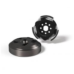 Einstellbare 3-Backen Kupplung. Kann durch verschieben des Kupplungsschlittens eingestellt werden ohne das die Federn getauscht werden müssen. Durch die zusätzliche Abstützung der Lagerbolzen der Kupplungsbacken mittels dem stabilen Innenrahmen wird ein verkanten der Beläge verhindert.
