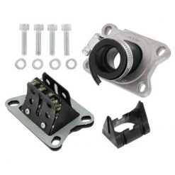 Dieser vulkanisierte Zweiklappenmembranblock ergänzt euer Stage6-Setup und unterstützt die Zylinderfüllung ab einem 19-mm-Vergaser erst richtig. Das Layout wurde den Membranblöcken aus dem bekannten Einlasssystem nachempfunden. Im Lieferumfang enthalten sind der Membranblock aus benzinresistentem Viton® sowie Stage6-Carbonmembrane in 0,35mm Stärke, ein 28mm-Venturi-Einsatz und ein Satz Glasfasermembrane mit 0,40mm Stärke.