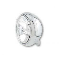 Innovativer Power-LED-Scheinwerfer mit klarem Glas, Fern-, Abblend- und Standlicht-Funktion. Das Besondere am wuchtigen 7 Zoll Hauptscheinwerfer ist die LED Licht-Technologie die in ihm steckt sowie die unten liegende Befestigung, die es ermöglicht, durch umdrehen den Scheinwerfer näher oder weiter entfernt am Lenkkopf zu montieren. Im oberen Bereich des Scheinwerfers leuchtet das Abblendlicht und bei eingeschaltetem Fernlicht leuchtet zusätzlich der untere Bereich. Der YUMA 2 TYP 3 verfügt zudem über einen verchromten, asymmetrischen – nur für den Rechtsverkehr zugelassenen – Reflektor, E-geprüft.