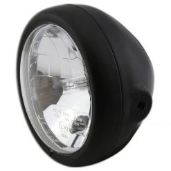 Mit Fern-, Abblend- und Standlichtfunktion, Befestigungspunkt unten, in einem verchromten und robusten Metallgehäuse, klares Glas.