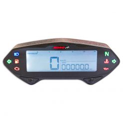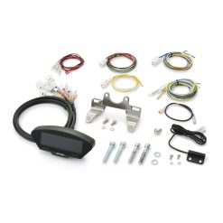 Das kompakte Gehäuse des digitalen Cockpits hat eine Grösse von 120x40x28.5mm und enthält alle Funktionen, die man braucht. Dank der mitgelieferten Halterung ist die Montage an jedem Lenker mit einem Durchmesser von 7/8 Zoll (22mm) bis 1 Zoll (25.4mm) möglich. Ausserdem ermöglichen die zwei Schraubenlöcher (M5) auf der Rückseite des Gehäuses eine flexible Montage. Das Display hat eine blaue Hintergrundbeleuchtung und zeigt alle nötigen Informationen wie Geschwindigkeit, Drehzahl, Kilometerstand, Tankniveau, Uhrzeit usw. an. Inkl. Anleitung in deutscher und englischer Sprache.