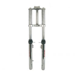 Teleskopgabel von EBR als Ersatz für die originale Kurzschwingengabel. Deutlich bessere Strassenlage und ein direktes Fahrgefühl zeichnen diese Gabel aus. Für stark getunte Ciao und Rennmofas eine fast unverzichtbare Fahrwerksverbesserung. Pulverbeschichtet in Schwarz-Matt.
