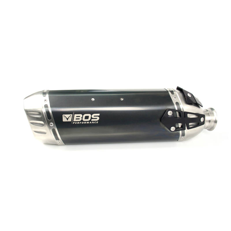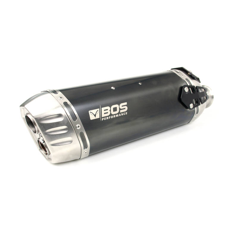 BOS Endschalldämpfer DESERT FOX, der Dämpfer für Enduros, mit mechanisch verstellbaren DB- KILLER (DB MAKER)/Soundregler. Komplett aus Edelstahl gefertigt in drei Ausführungen lieferbar: Carbon-steel, Edelstahl matt und schwarz