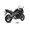 Der Mivv GP ist ein Auspuff mit kompakter Größe und Renn-Look. Der Schalldämpfer hat eine runde Form mit herausnehmbarem dB-Killer und erweiterten Blenden zur Bereicherung des Racing-Stils. Die ausgezeichnete Leistung des Auspuffs wird durch seine technischen Lösungen garantiert, die bei Racing-Auspuffen zum Einsatz kommen.
