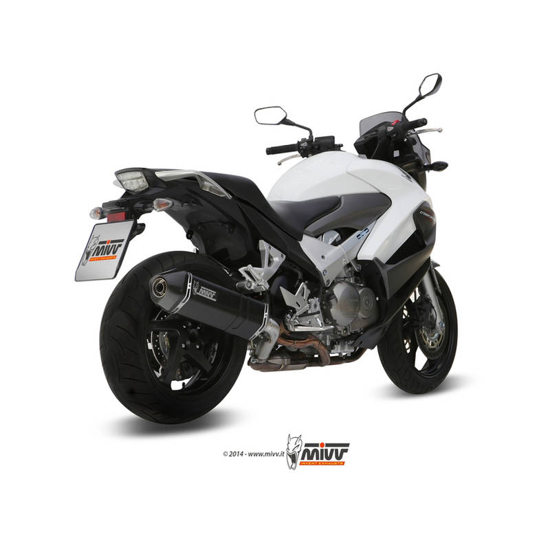 Der Speed Edge von Mivv hat ein Sechskantdesign, dank dem er sich perfekt an den Rahmen des Motorrads anschmiegt. Der Auspuff bietet erhebliche Gewichtseinsparung zum Vorteil der Leistung des Motorrads. Die Endkappe und der Befestigungsbügel bestehen aus Carbonfaser. Der Auspuff verfügt über herausnehmbaren dB-Killer.