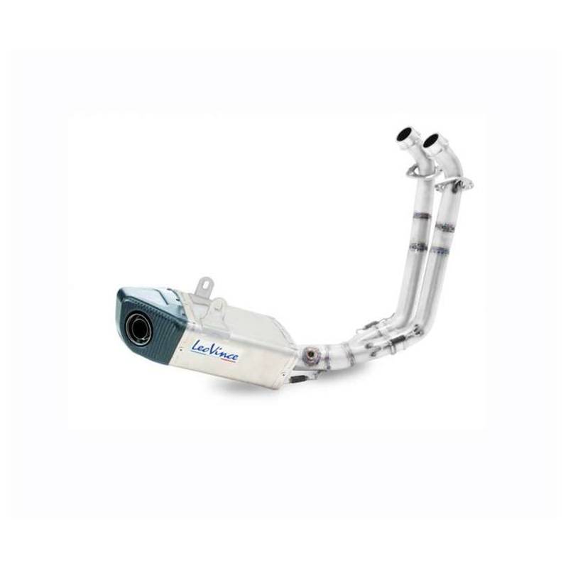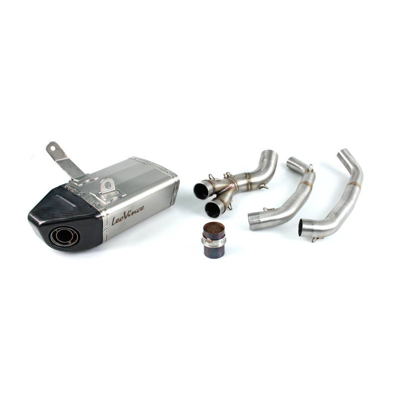 LeoVince Underbody Full, ideal um das Design Ihres Fahrzeugs uneingeschränkt zu unterstreichen und den Gewichtsschwerpunkt Ihres Bikes auf die Straßenmitte zu verlegen. Die Durchmesser der Rohre und der Schalldämpfer insgesamt in seiner Bauart sorgen für eine perfekte Kalibrierung des Motors.