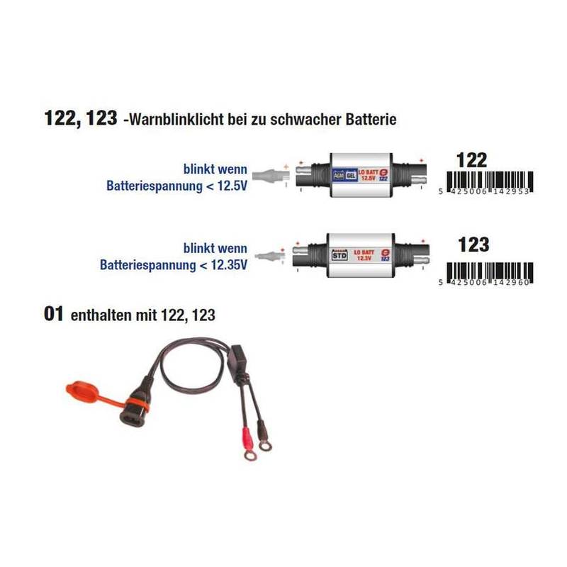 Batterieladungs- Warner *tecMATE* 12.3V für STANDARD Nass Batterien (OPTI 123)