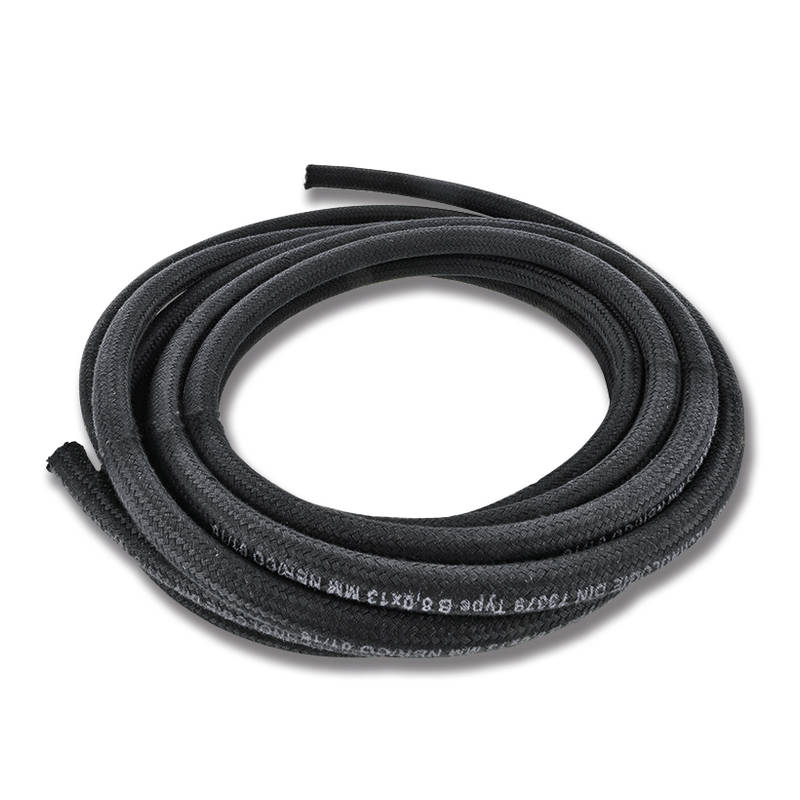 Schwarzer Benzinschlauch mit textilem Geweberingmantel (Garngeflecht aufvulkanisiert).