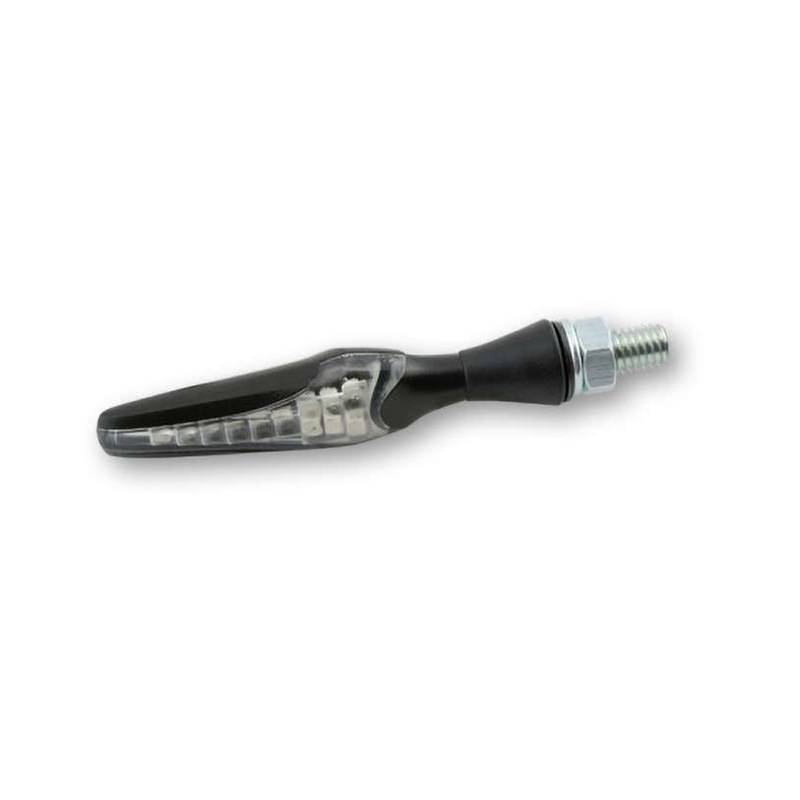 Der moderne Blinker mit verbautem Lauflicht System, leichtem Kunststoffgehäuse und getöntem Glas hat die neueste Lichttechnik. Beim Blinken leuchten die einzelnen LEDs nacheinander von innen nach außen auf und es entsteht ein Wischeffekt wie bei aktuellen PKW-Modellen.