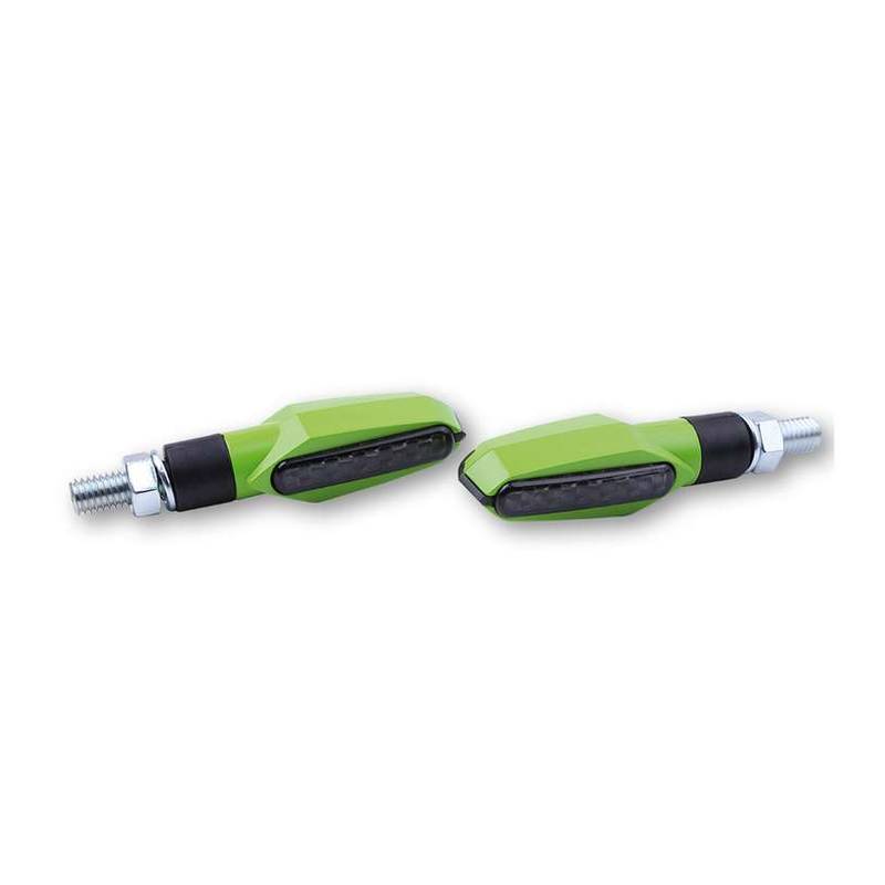 Blinker *SHIN YO* (Paar) MULTIFACE mit LED in GRUEN/GETOENT (M8 – 62 x 18 x22mm – Stiel 12mm) (E-Homologiert)
