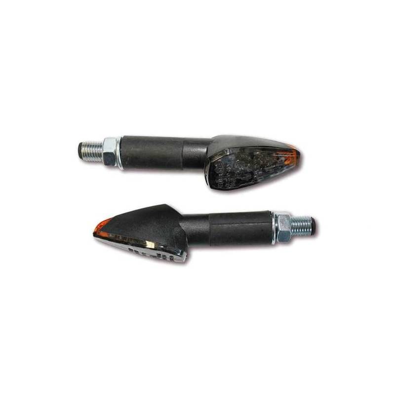 Blinker *SHIN YO* (Paar) PEAK mit LED in SCHWARZ/GETOENT (M8 – 46 x 27 x 27mm – Stiel 40mm) (E-Homologiert)