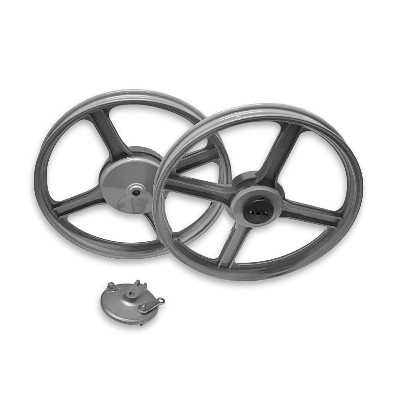 Originalersatz Felgenset inkl. Bremsteller (nicht lackiert) vorne. Getriebe und Bremsbeläge können weiterverwendet werden.