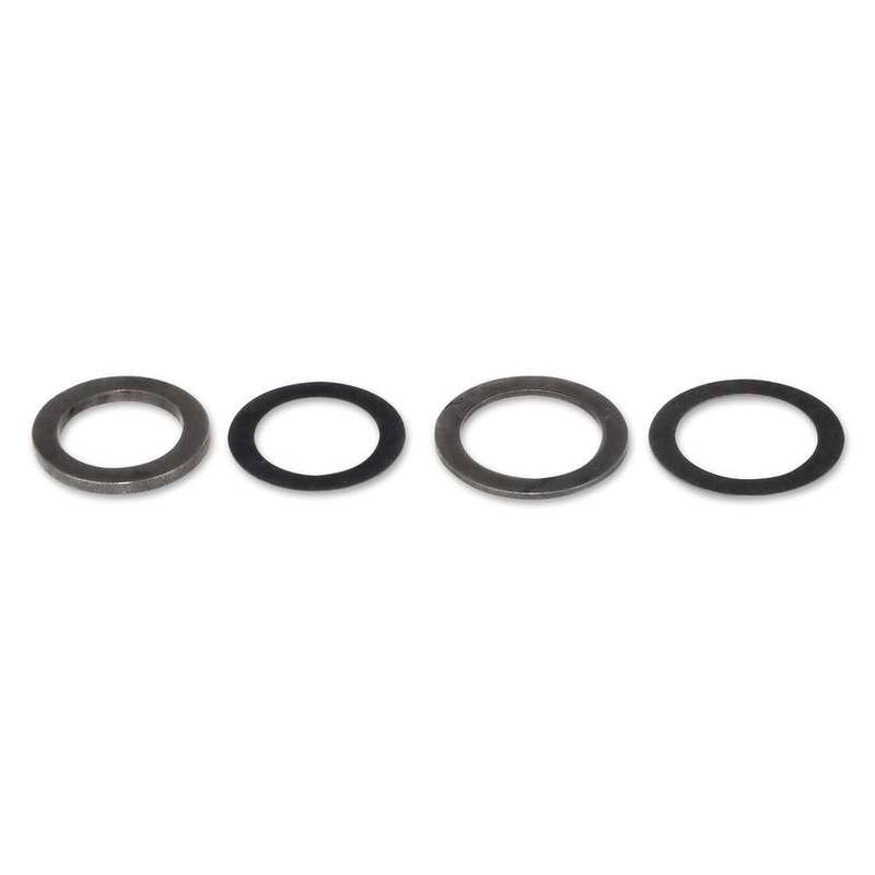 Passscheibenset für den Kupplungskorb des Puch E50 Motors. Es besteht aus je zwei 15mm- und 17mm Gleitscheiben welche als Paar vor bzw. hinter dem Kupplungskorb zum Einsatz kommen. Da sie als Paar eingesetzt werden, wird die Reibung auf ein Minimum reduziert. Die gewählte Dicke der verschiedenen Scheiben passen auf fast alle Kupplungskorb-Kurbelwellenkombinationen.