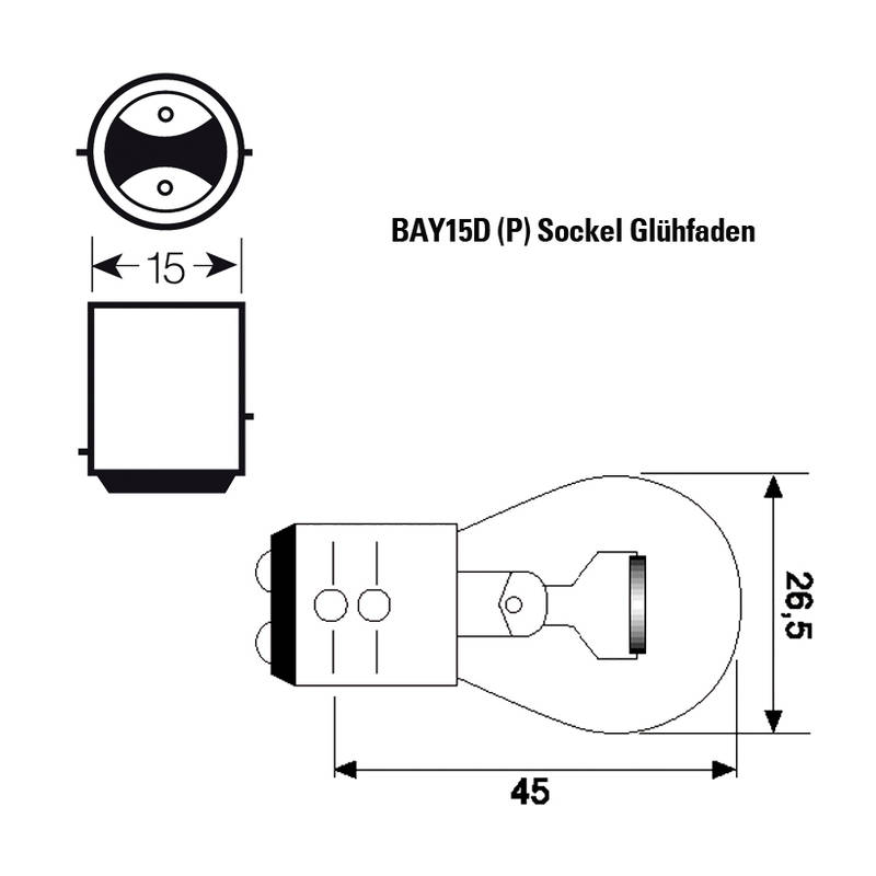 Glühfaden- Birne Osram Standard 12V/23-8W (Sockel: BAY15D – P) in Weiss