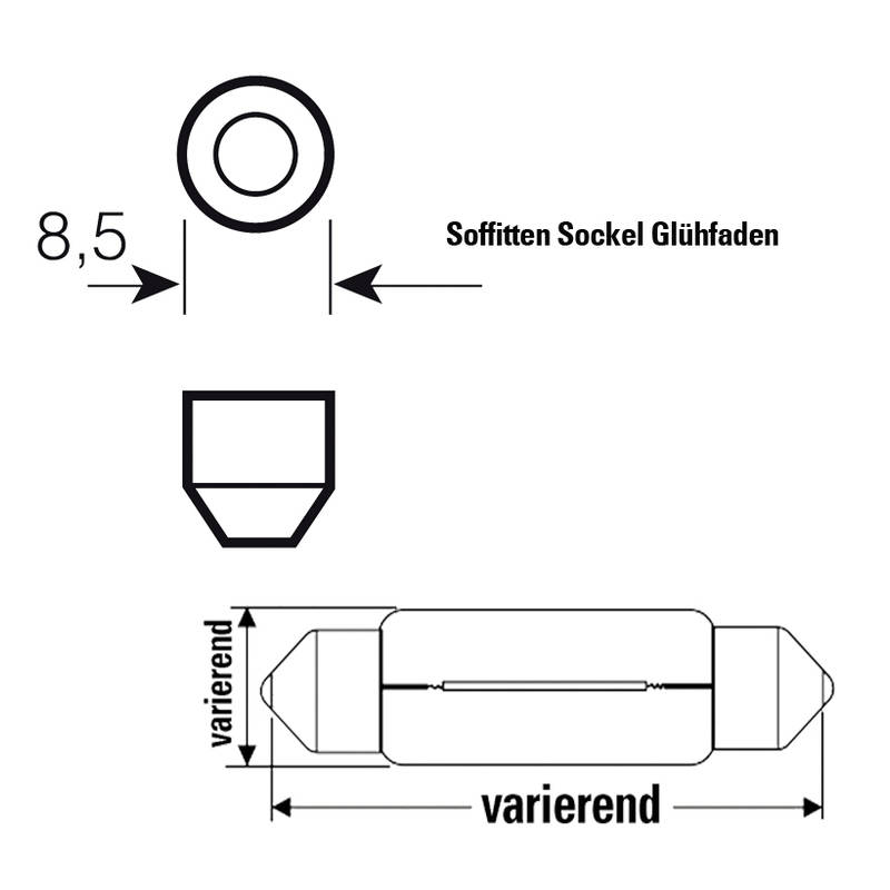 Glühfaden- Soffitten NO NAME Standard 6V/3W SV7-8 (Länge: 30mm) in Weiss