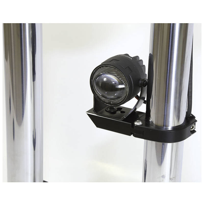 Schwarz-eloxierter Halter aus CNC-gefrästem Aluminium, z. B. zur Montage eines HIGHSIDER SATELLITE Fern- oder Abblendscheinwerfers. Auch universal einsetzbar.