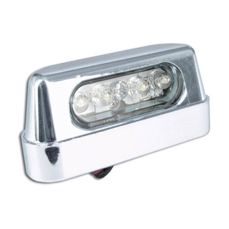 Homologierte LED-Kennzeichenbeleuchtung. Durch die kleine Baugrösse lassen sich schöne Heckumbauten legal umsetzen.