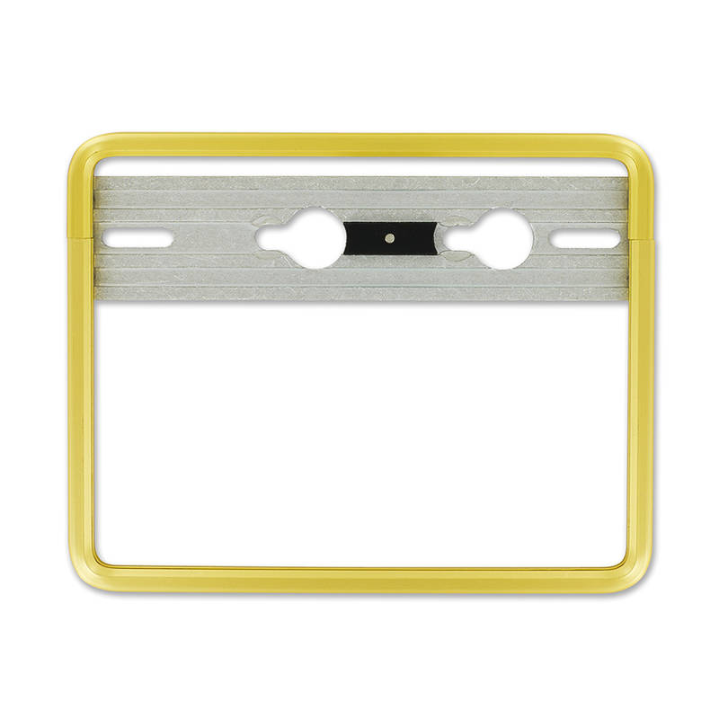 Hochwertiger Nummerrahmen aus goldig eloxiertem Aluminium.