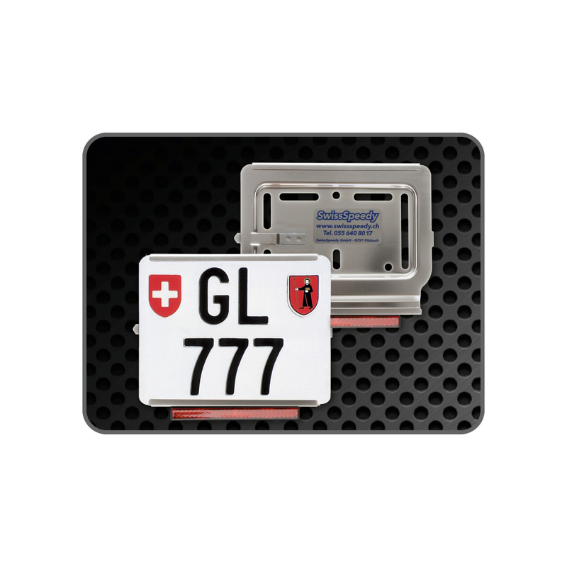 Kennzeichenrahmen SwissSpeedy Moto CHROMSTAHL Links Rückstrahler