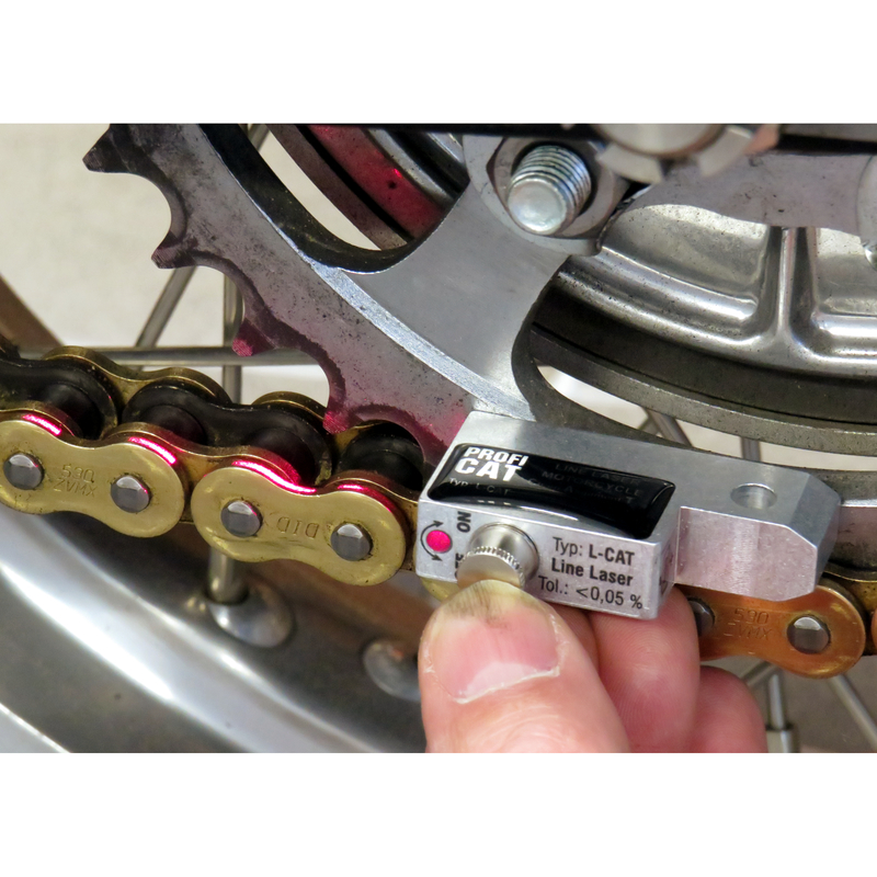 Mit den patentierten Laser CAT (Chain Alignment Tool) wird die Hinterradachse perfekt positioniert. Dies gewährleistet optimierte Fahrdynamik, mehr Sicherheit und mehr Fahrspaß.