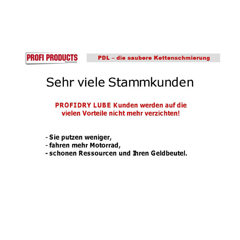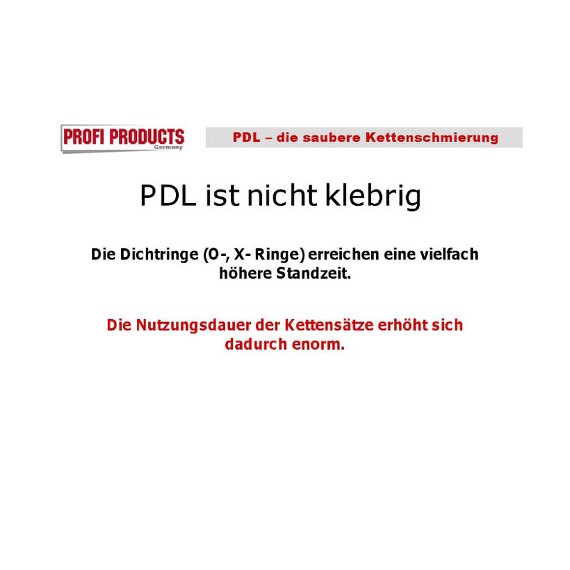 – PDL® Profi Dry Lube verhindert den vorzeitigen Verschleiß der Dichtinge. Die Schmierung der Kettenbolzen bleibt länger erhalten.