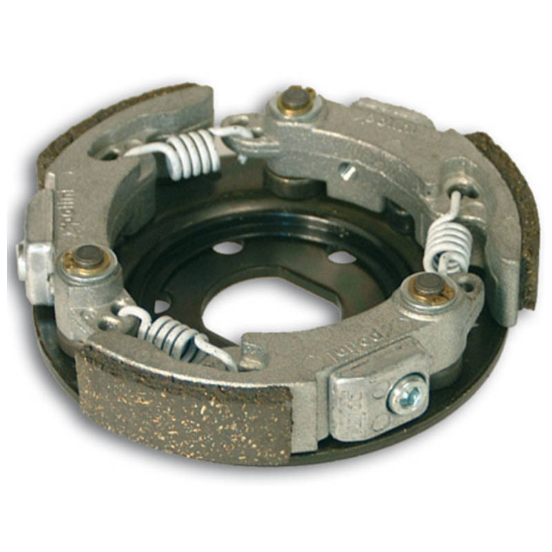 Die 3G-ForRace-Kupplung von Polini, die im Gegensatz zu der 2G Evolution bis jetzt noch 2 Backen besaß, kommt nun auch mit 3 Backen zum Einsatz. Einstellung der Einkuppeldrehzahl durch Tauschen der mitgelieferten Kupplungsfedern. Bei der Feinjustierung orientiert sich Polini an der Stage6 Torque Control – mittels Inbusschlüssel von der Seite, allerdings wurden die Federn nicht nach vorne verlegt, um das Patent nicht zu verletzen. Zum Ablesen oder Tauschen muss also immer noch die gesamte Kupplung ausgebaut werden.