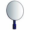 Schwarzer, runder Spiegel mit konvexem Glas (2.5mm), geradem und kurzem Arm in Blau.