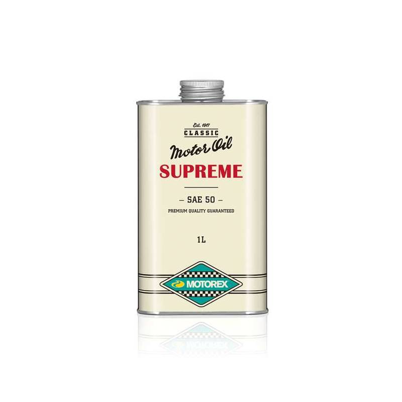 MOTOREX SUPREME SAE 50 ist ein mild legiertes Einbereichs-Motorenöl auf Mineralölbasis. Die authentische Formulierung bietet einen optimalen Verschleiss- und Oxidationsschutz. Ohne Dispergentiensadditive, damit sich anfallender Schmutz und Abrieb in einer Vertiefung der Ölwanne, mit Hilfe eines Magnetes oder in einem Grobfilter, absetzen kann.