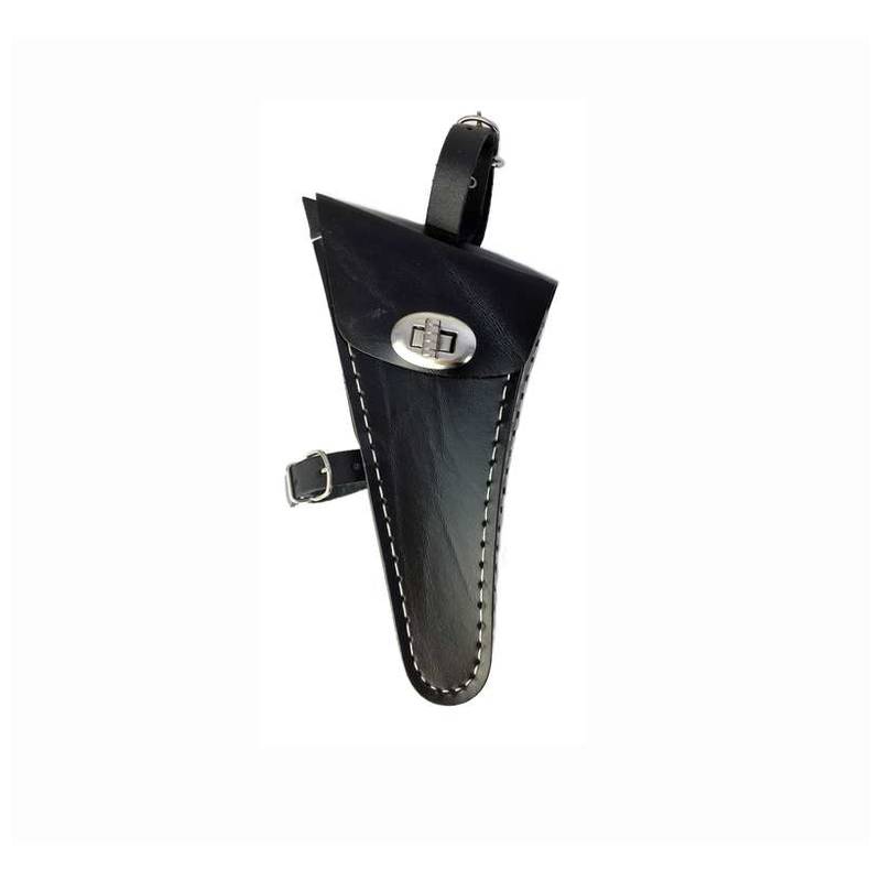 Trendige Pistolentasche in schwarzes Lefa (Lefa ist ein Lederfaserstoff) für Werkzeug, Handy etc. Die Befestigung erfolgt am Lenker u.a. auch an der Sattelstütze oder am Gürtel.