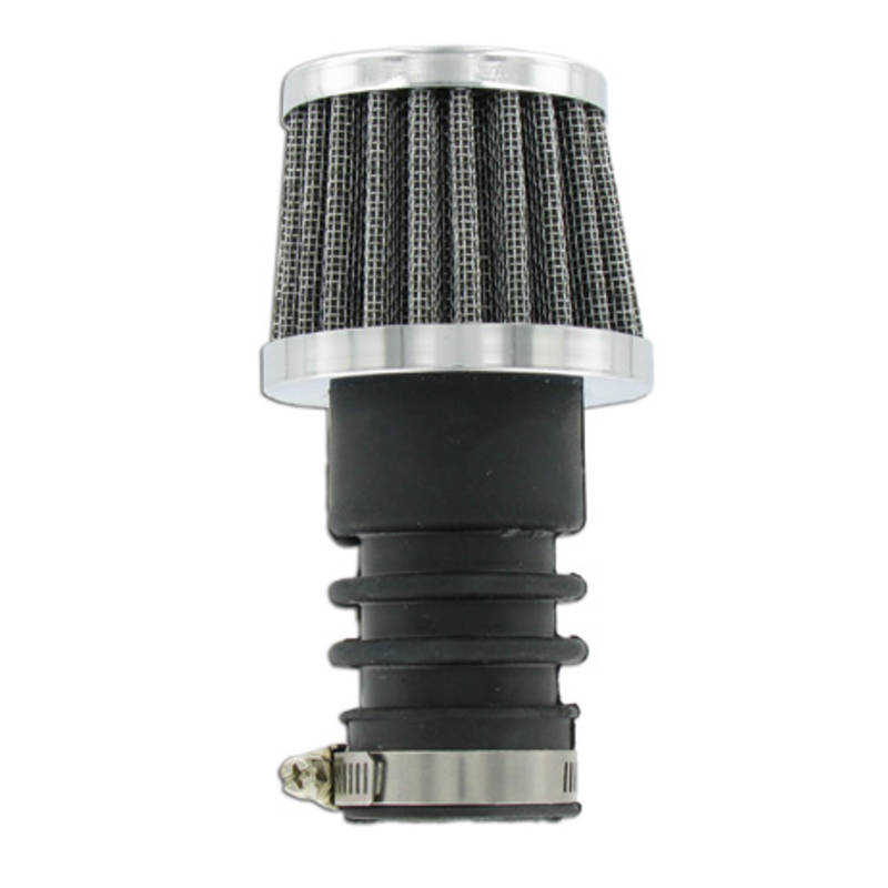 Ø 60mm Pilzluftfilter / Powerfilter für Bing Vergaser mit 20mm Anschlussweite. Gesamtlänge: 115 mm, passend für Bing 12 Vergaser wie sie an Sachs und Puch ab Werk verbaut wurden sowie für 15mm Bing Tuning-Vergaser.