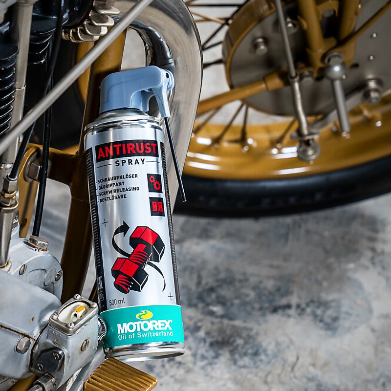 MOTOREX ANTIRUST SPRAY eignet sich hervorragend, um festgerostete Schrauben zu lösen.