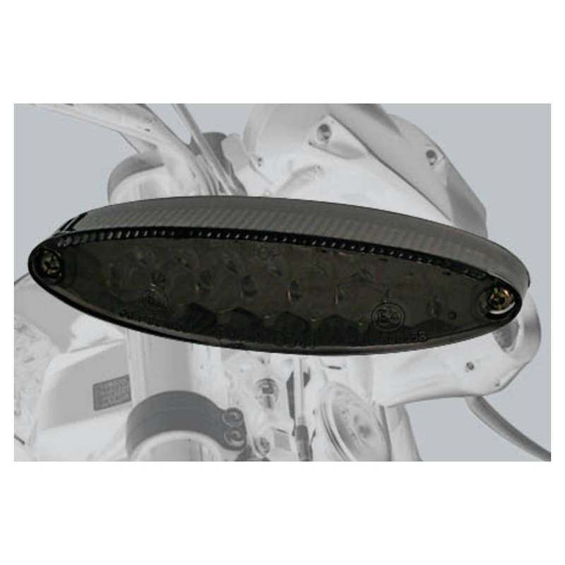 Modernes mini LED-Rücklicht mit Bremslichtfunktion und Nummernschildbeleuchtung, getöntes Glas, E-geprüft.