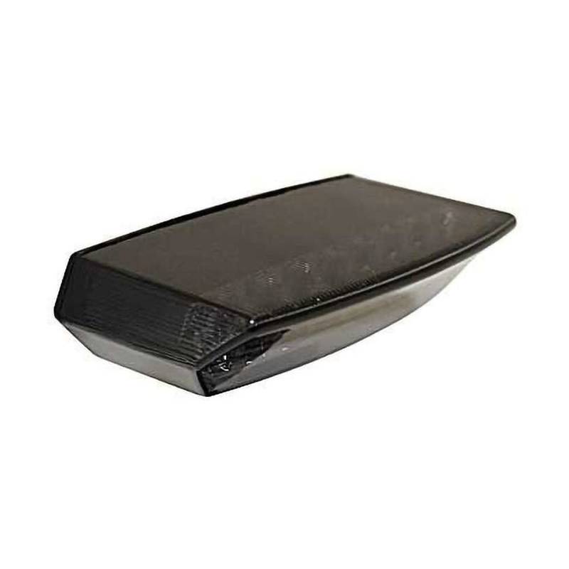 LED Rücklicht BOSTON, schwarze Basisplatte, getöntes Glas, E-geprüft. Mit Nummernschildbeleuchtung! ABS-Basisplatte Maße: B. 110 mm, H. 27 mm, T. 62 mm.