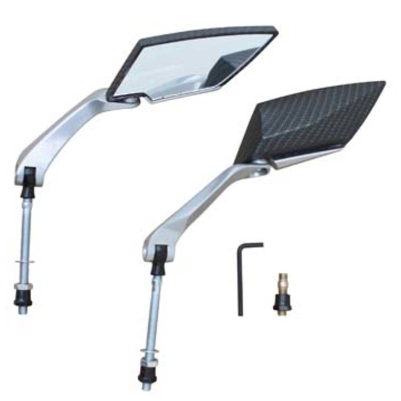 Optisch wunderschöne Rückspiegel von Replay. Das Spiegelgehäuse ist aus Kunststoff, die Arme und Aufnahmen aus Aluminium gefertigt.