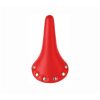Sportlicher Allrounder aus Kunstleder, Sitzfläche mit sechs Edelstahlnieten, schwarzes Stahlgestell auf Kunststoffbasis. Wird ohne Klemme geliefert, geeignet für Patentsattelstütze