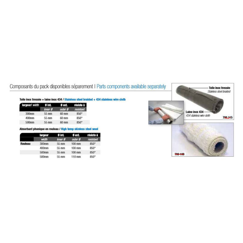 Schalldämpferwolle *ACOUSTA-FIL* 2T/4T, hitzebeständig bis 850° C, Ø 55/100x 300mm