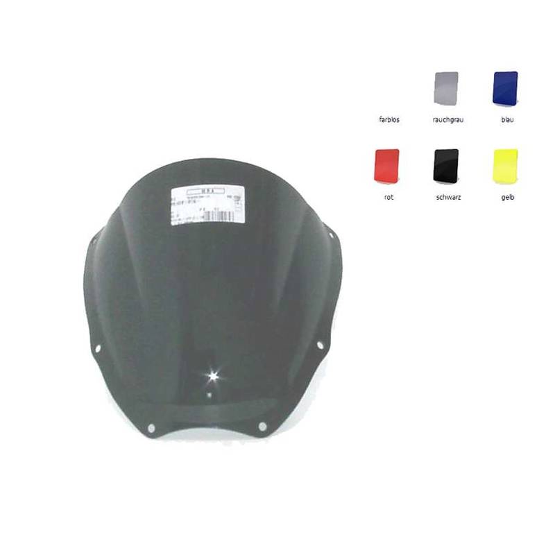 Racingscheibe [R]Die Racingscheibe hat in der Mitte eine kuppelartige Erhöhung um den Winddruck auf den Helm zu reduzieren und somit die Höchstgeschwindigkeit zu verbessern.