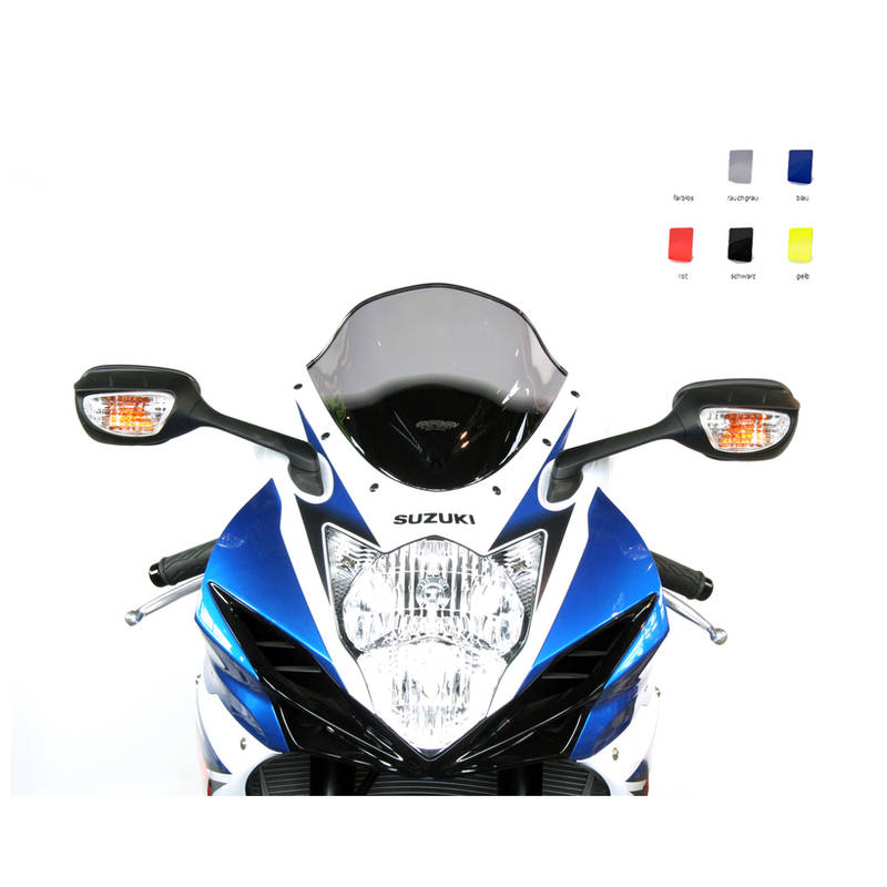 Racingscheibe [R]Die Racingscheibe hat in der Mitte eine kuppelartige Erhöhung um den Winddruck auf den Helm zu reduzieren und somit die Höchstgeschwindigkeit zu verbessern.