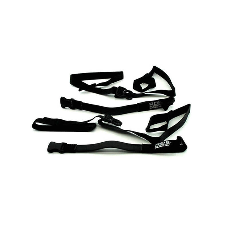ROK StrapsGrößenverstellbare Spanngurte mit elastischem GummizugBeidseitig geschlossenes Ende mit je einer Öse und einem Schnellverschluss in der Mitte.