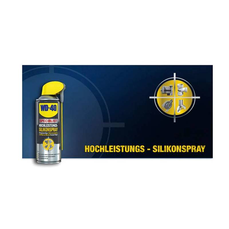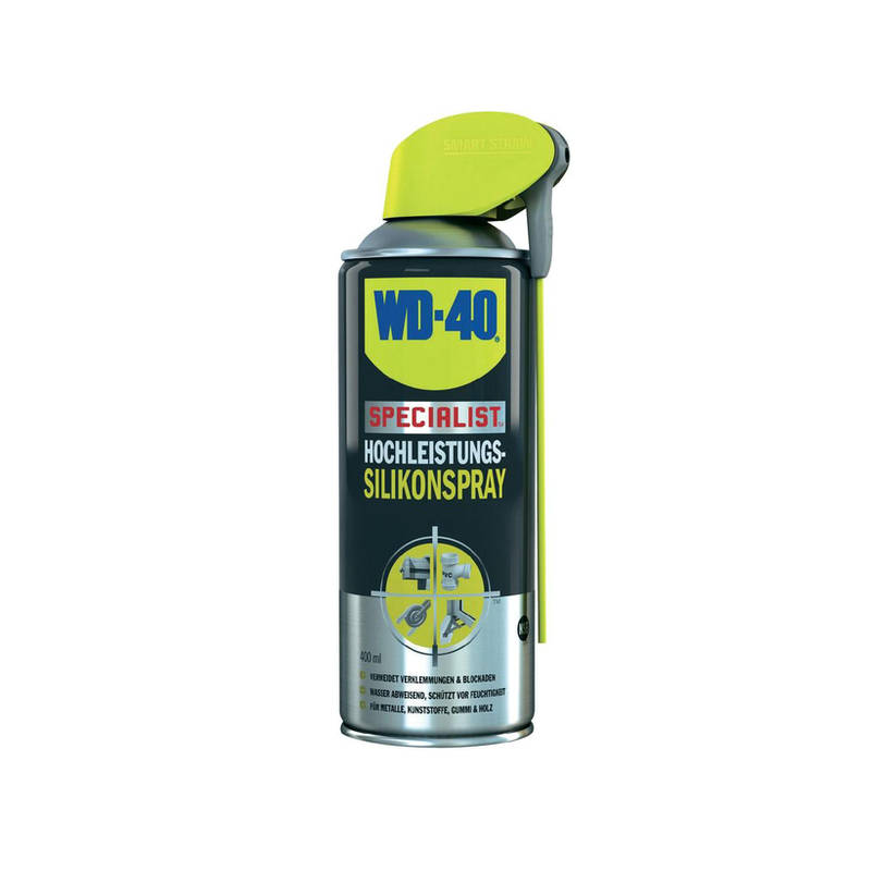 WD-40 SPECIALIST Silikonspray ist farblos, Wasser abweisend, schützt vor Feuchtigkeit und bietet hervorragenden Schmiereigenschaften. Es verhindert Blockaden und besitzt eine hohe Druckbeständigkeit. Es kann auf Metall, Kunststoff, Holz und Gummi angewendet werden.