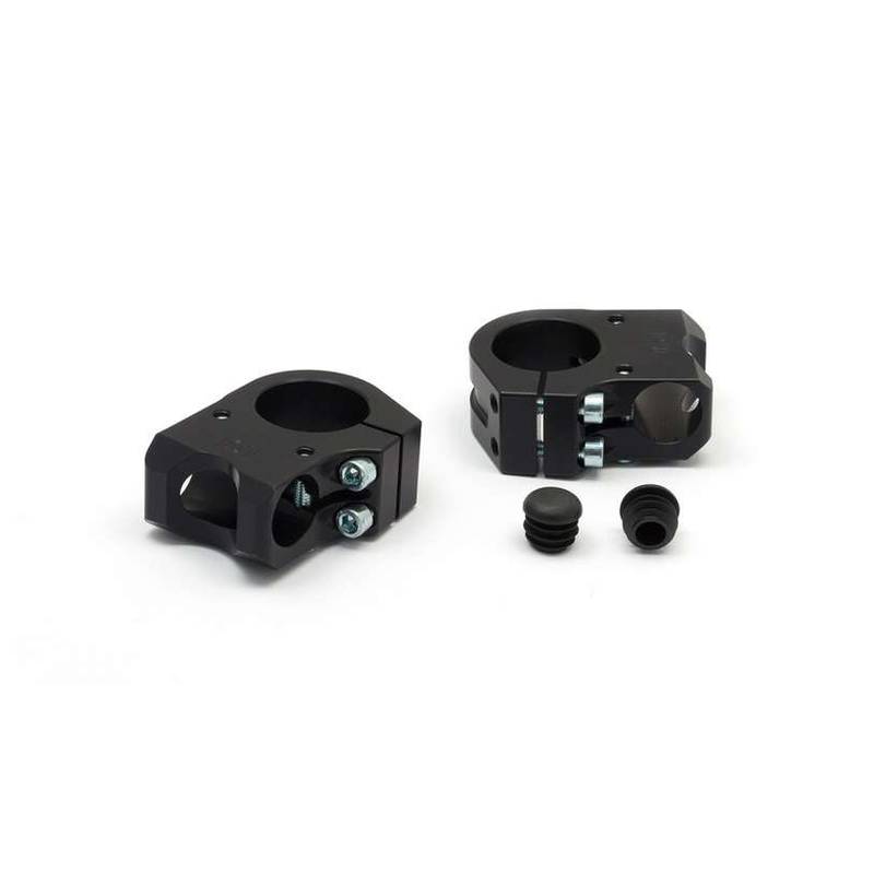 Standrohrschellen *LSL* (Paar) Sport-Match aus Alu in SCHWARZ (Anschluss: Ø38 mm – 5.0°) inkl CH-Hom.