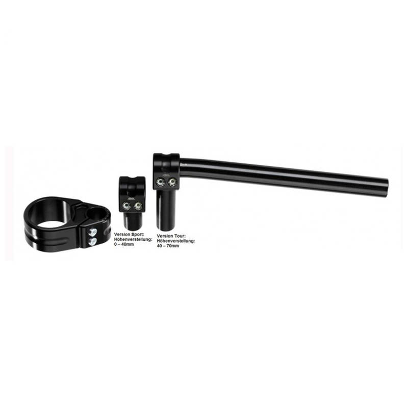 Stummellenker *ABM* MULTICLIP SPORT (0-40mm) Ø 22mm in SCHWARZ zu Ø 50mm Gabelholmen (CH-Homologiert)