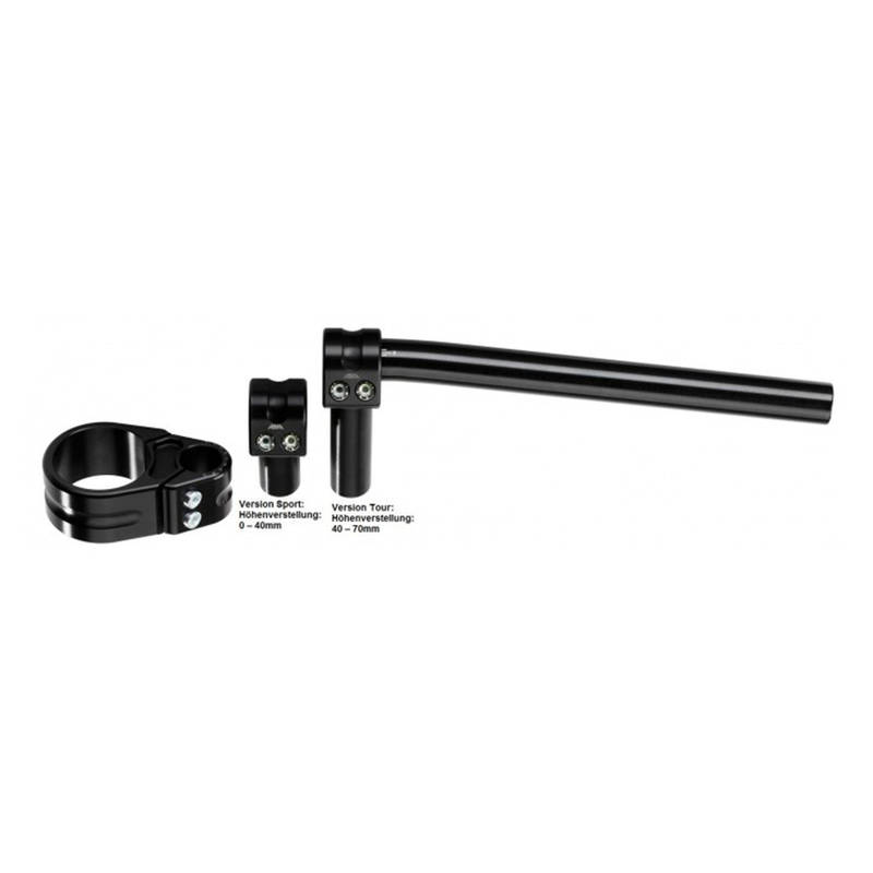 Stummellenker *ABM* MULTICLIP TOURING (40-70mm) Ø 22mm in SCHWARZ zu Ø 45mmGabelholmen (CH-Homologiert)