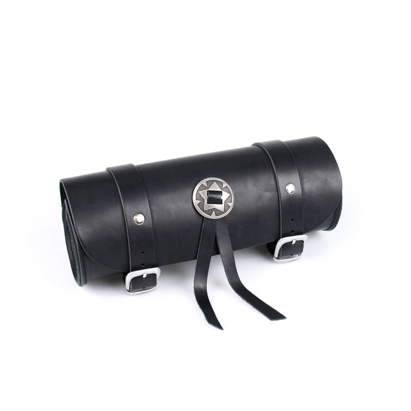 Werkzeugrolle *NN PRODUCTS* in SCHWARZ aus Rindleder mit Chromdeckel und Concho (Ø 10.5 x 28cm)