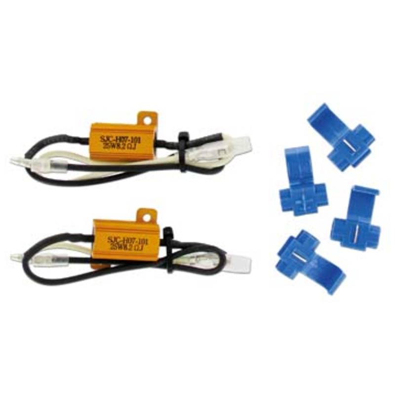 Beim Anbau von LED-Blinkern kann es zu Problemen mit der Blinkfrequenz kommen. Diese Widerstände bieten hierbei wirkungsvoll Abhilfe, da sie bei 12V die Leistung der ursprünglichen Glühlampen-Watt-Anzahl simulieren. Man benötigt pro Blinker einen Widerstand.