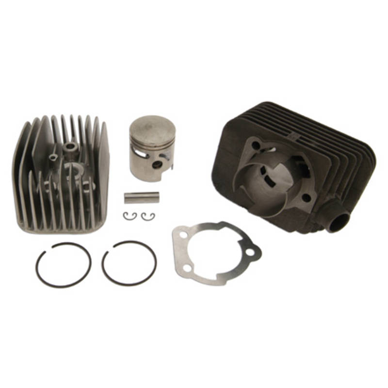 Der Klassiker! 63ccm Gusszylinder inkl. Kopf von Polini Motori. Top Verarbeitung und Langlebigkeit bei einer gleichmässigen Leistungssteigerung sprechen für diesen Zylinder. Ideal für ein unauffälliges Sportsetup zb. mit 13/13 Vergaser und Supercity-Auspuff. Kolbenbolzendurchmesser 10mm.