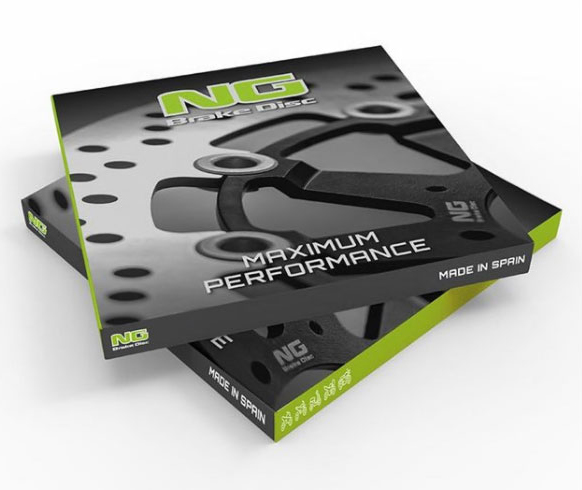 Der Bremsscheibenspezialist NG Brake Disc ist ein spanisches Familienunternehmen, welches seit mehr als 20 Jahren Bremsscheiben für Motorräder, Roller, Quad und ATV produziert. Mehr als 30 namhafte europäische und japanische Fahrzeughersteller vertrauen auf die Spitzenqualität von NG und rüsten ihre Fahrzeuge ab Werk mit NG gefertigten Bremsscheiben aus. Als einer der wenigen Hersteller verfügen alle NG Bremsscheiben über eine Zertifizierung des TÜV Rheinland und dürfen im öffentlichen Straßenverkehr gefahren werden. Die Allgemeine Betriebserlaubnis des Kraftfahrtbundesamtes KBA wird bei jeder Bremsscheibe mitgeliefert. Die OEM Version entspricht in den Abmessungen komplett der Originalbremsscheibe. Das Design kann jedoch bei einigen Modellen abweichen.